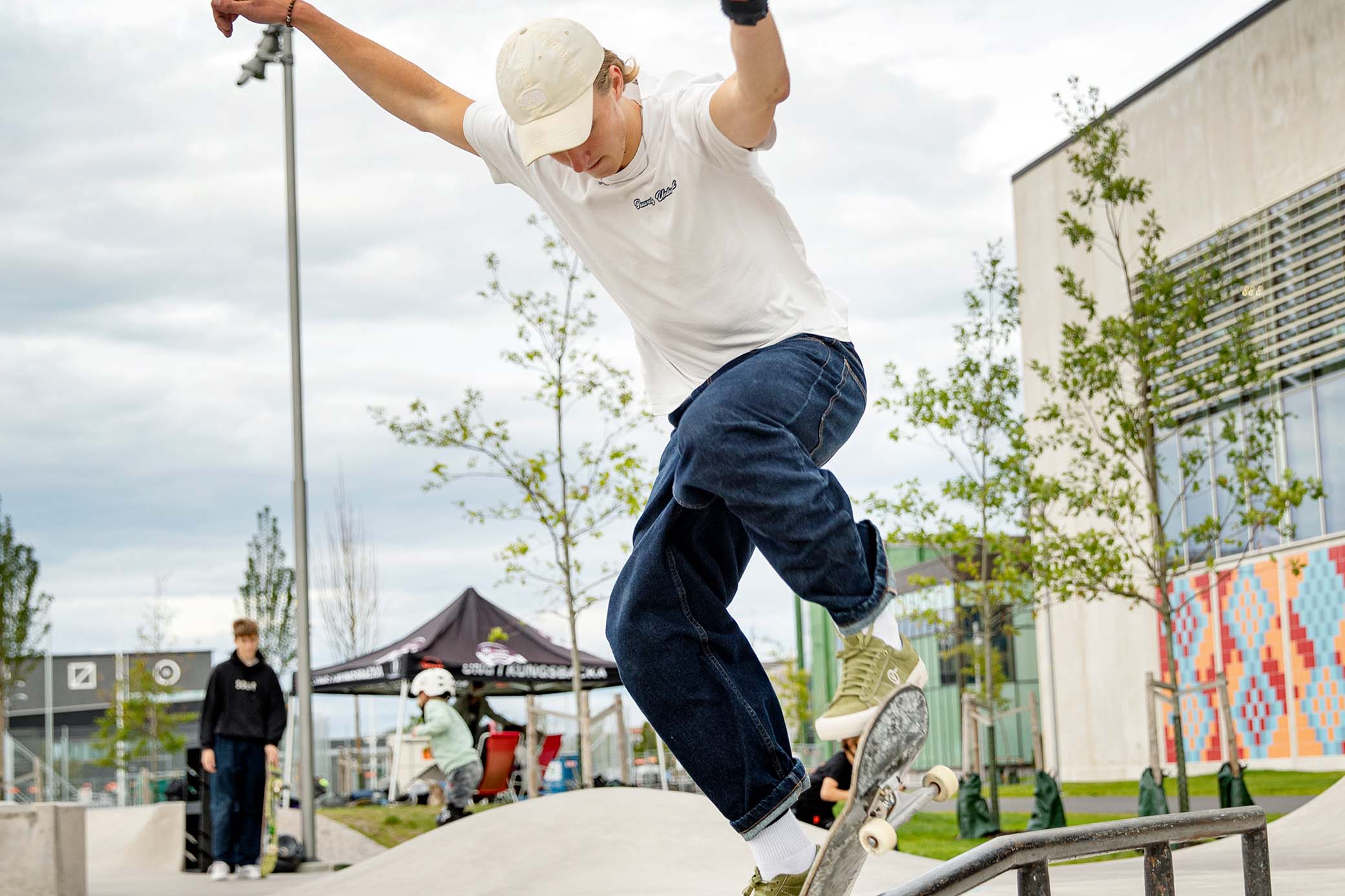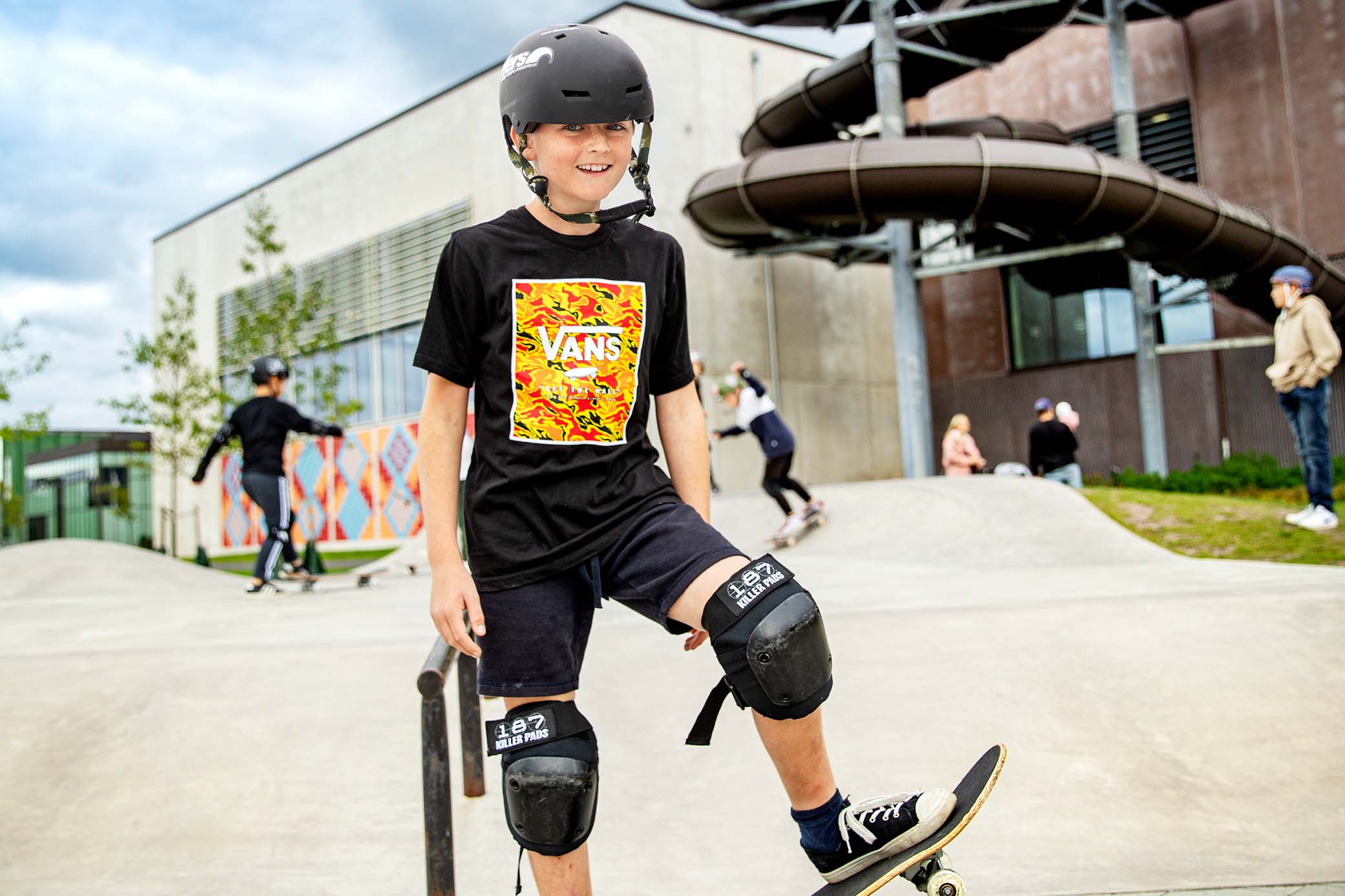 Arvid Lundin, 10 år Här i skejtparken har jag bara varit en gång tidigare. Jag såg filmer med skejtare på YouTube och önskade mig en bräda i julklapp. Jag har skejtat ett halvår ungefär. Vi har en ramp där vi bor där jag brukar köra annars. Här i Idrottsparken är det justa människor och man lär sig tricks och sånt av andra. Jag vill gärna komma tillbaka hit igen.
